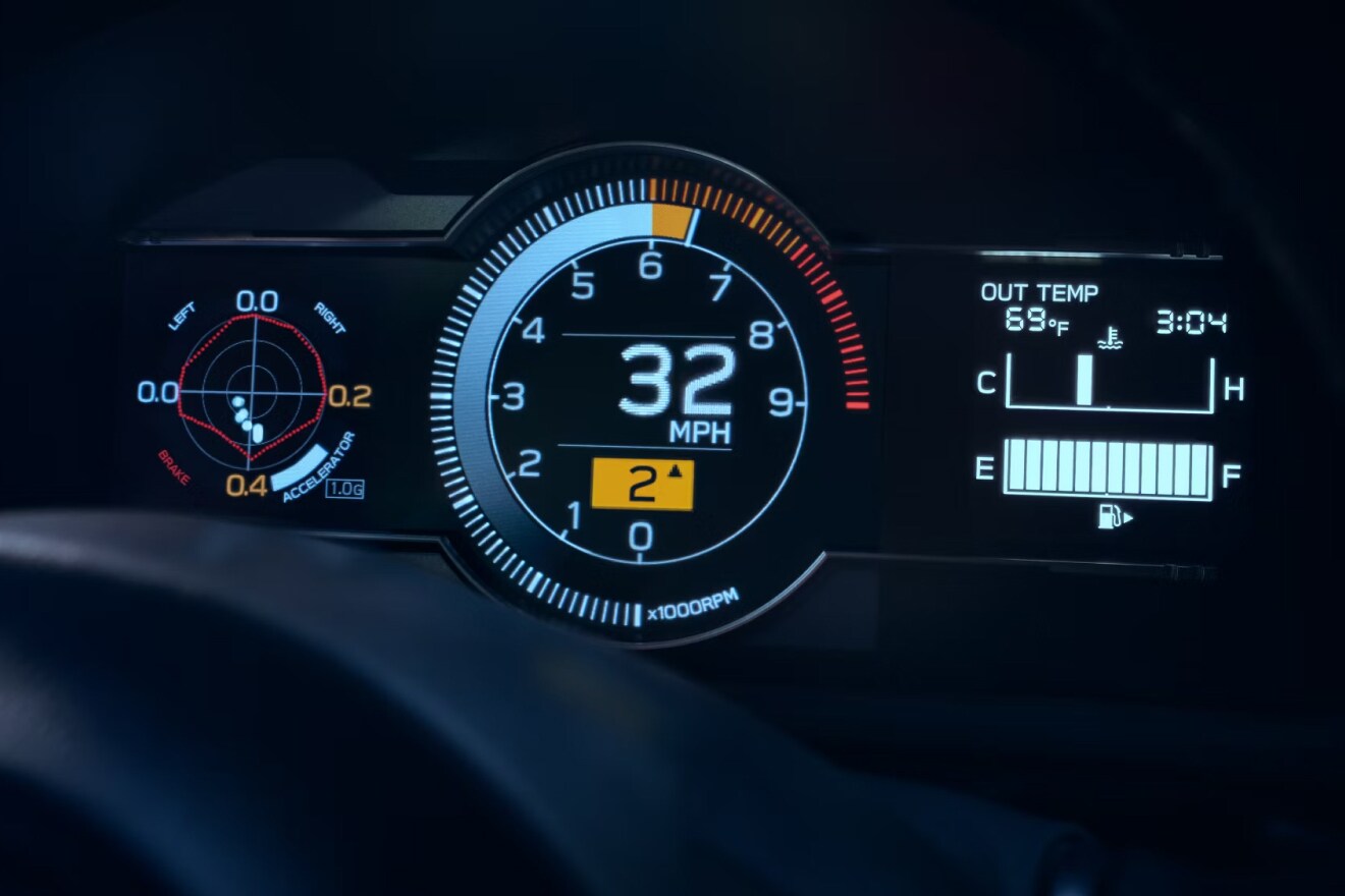 Get all of the vital info you need at a glance. Toggle between Normal, Sport and Track Modes. With Track Mode activated, the gauge cluster reanimates to show you a linear-style tachometer and larger shift light-helping you optimize your shifts.