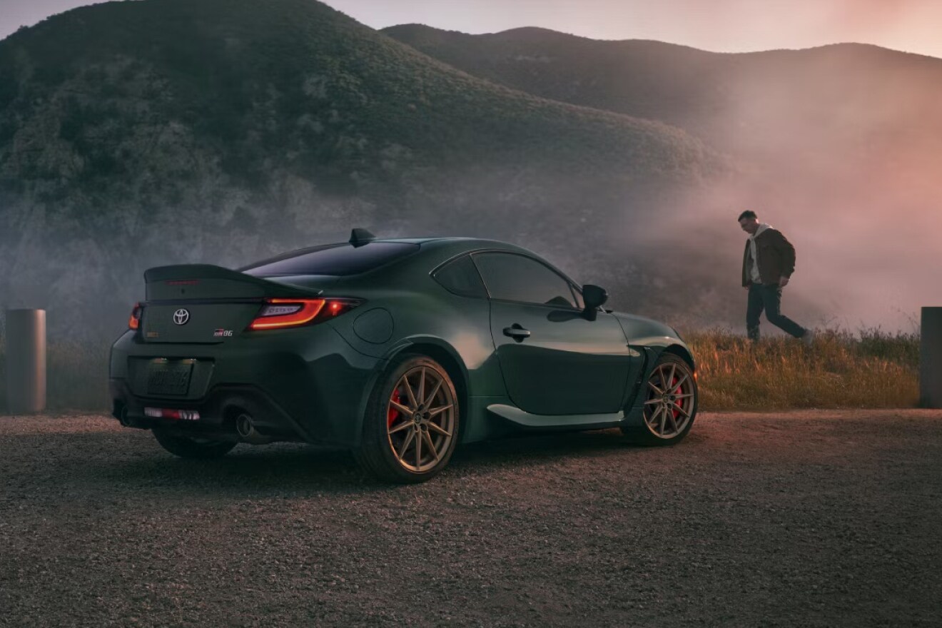 GR86 Hakone Edition's striking Ridge Green exterior captures the lush essence of the Hakone Forest, complemented by rich, matte-bronze-painted 18-in. alloy wheels and a premium tan UltrasuedeĀ® 3 and leather-trimmed interior. Its Hakone rear badging, exclusive puddle lights, key glove and leather-covered folio proudly underscore its heritage, demanding attention wherever its roar echoes.