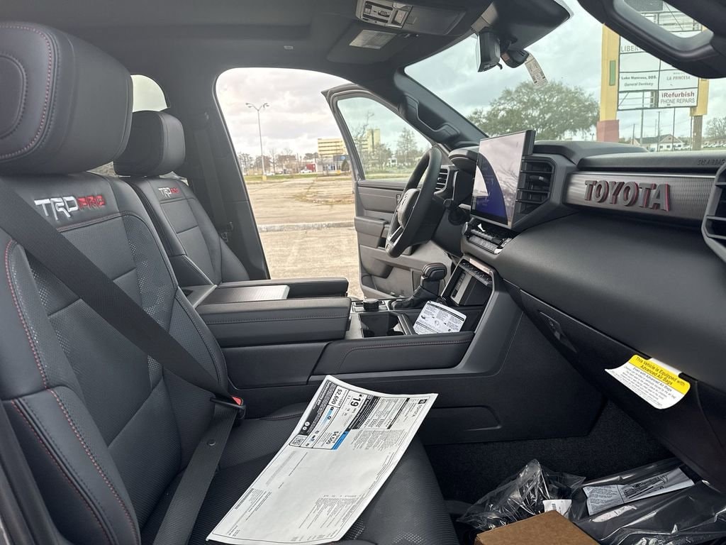 Morgan City Toyota is now under new ownership! TRD Pro Package, 3.4L V6, 12 Speakers, 3.31 Axle Ratio, 4-Wheel Disc Brakes, ABS brakes, Air Conditioning, Alloy wheels, AM/FM radio: SiriusXM, Apple CarPlay/Android Auto, Auto High-beam Headlights, Auto-dimming door mirrors, Auto-dimming Rear-View mirror, Automatic temperature control, Bed Step, Brake assist, Bumpers: body-color, Delay-off headlights, Driver door bin, Driver vanity mirror, Dual front impact airbags, Dual front side impact airbags, Electronic Stability Control, Emergency communication system: Safety Connect (up to 10-year trial subscription), Exterior Parking Camera Rear, Front anti-roll bar, Front Bucket Seats, Front Center Armrest, Front dual zone A/C, Front fog lights, Front reading lights, Front wheel independent suspension, Fully automatic headlights, Garage door transmitter: HomeLink, Heated and Ventilated Front Bucket Seats, Heated door mirrors, Heated front seats, Illuminated entry, Knee airbag, Leather Shift Knob, Leather steering wheel, Low tire pressure warning, Memory seat, Navigation system: Drive Connect Cloud Navigation (1-year trial subscription), Occupant sensing airbag, Outside temperature display, Overhead airbag, Overhead console, Panic alarm, Passenger door bin, Passenger vanity mirror, Power door mirrors, Power driver seat, Power moonroof, Power passenger seat, Power steering, Power windows, Radio data system, Radio: Premium Audio with JBL, Rear reading lights, Rear seat center armrest, Rear step bumper, Rear window defroster, Remote keyless entry, Security system, SofTex Seat Trim, Speed control, Speed-sensing steering, Split folding rear seat, Sport steering wheel, Steering wheel mounted audio controls, Tachometer, Telescoping steering wheel, Tilt steering wheel, Traction control, TRD Cast Aluminum Running Board, Trip computer, Turn signal indicator mirrors, Variably intermittent wipers, Ventilated front seats, Voltmeter, Wheel Locks, and Wheels: 18" Black Forged Aluminum BBS A $1,500 discount has been applied to the internet price for financing through Morgan City Toyota. Prices do not include government fees such as tax, title, and registration, or dealer-installed options. All pricing reflects applicable incentives and dealer rebates. Vehicle specifications, pricing, and availability are subject to change without notice. Recent Arrival!